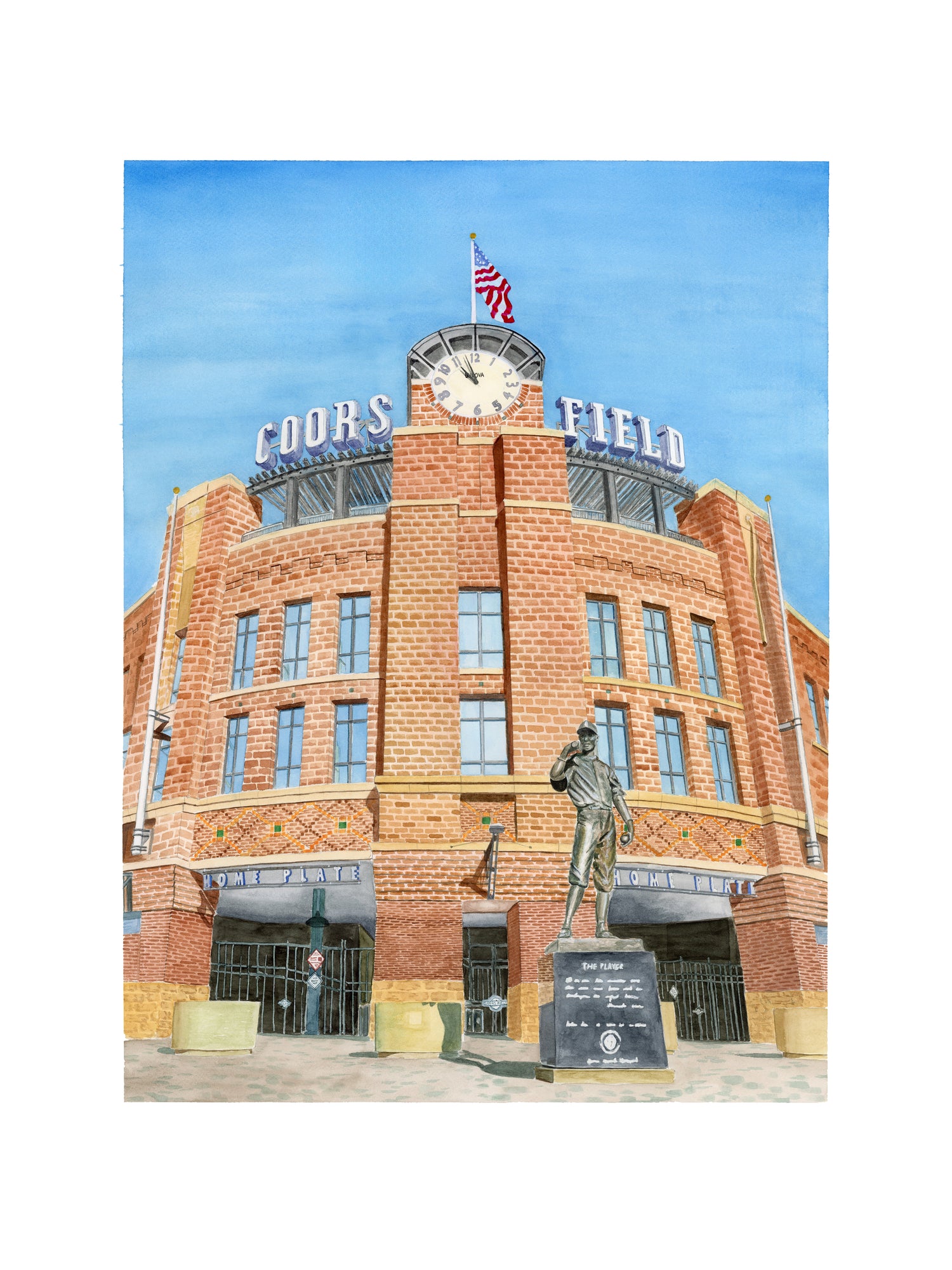 This artwork is an original interpretation of Coors Field, created by Rising Sun Arts. It is not affiliated with, endorsed, or sponsored by Major League Baseball, the Colorado Rockies, or Coors Brewing Company.